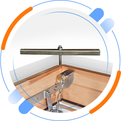 Уголки монтируются в угловых частях короба, усиливая его конструкцию и препятствуя перекосу лестницы. Монтажный комплект позволяет быстро отцентровать и зафиксировать лестницу в проеме.